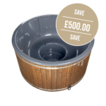 Cladded in durable Thermowood spruce, available in brown, and completed with a grey fiberglass insert and a black insulated eco-leather foldable cover, this tub not only provides excellent heat retention but also adds a sophisticated aesthetic.